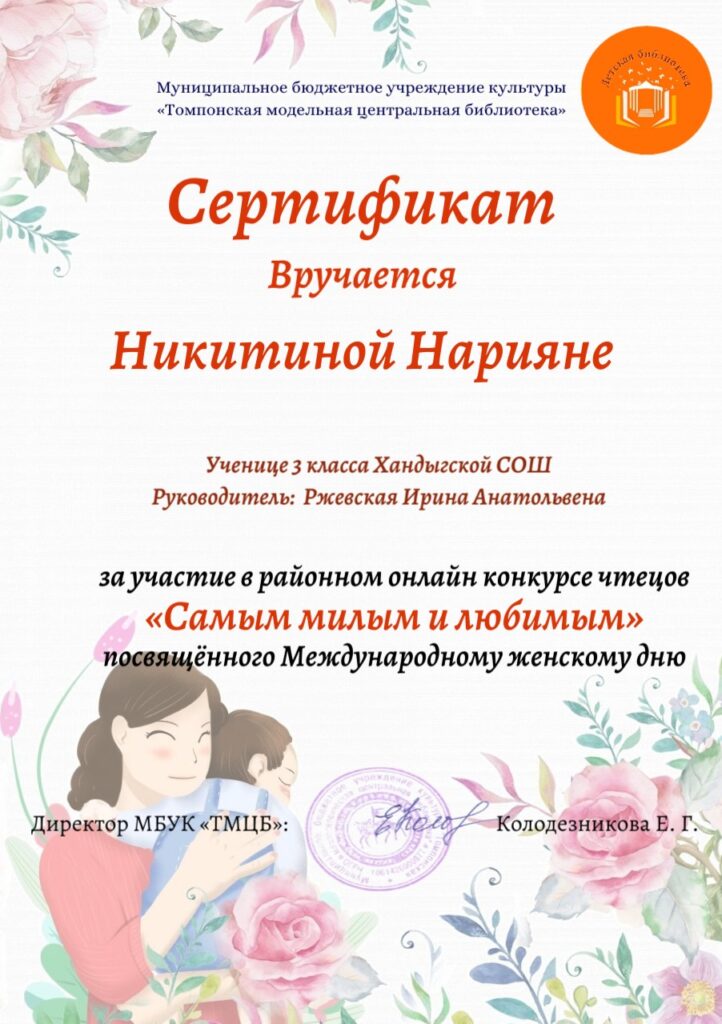 Итоги районного онлайн‑конкурса чтецов «Самым милым и любимым»
