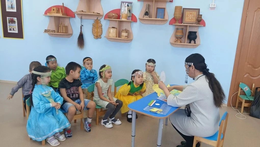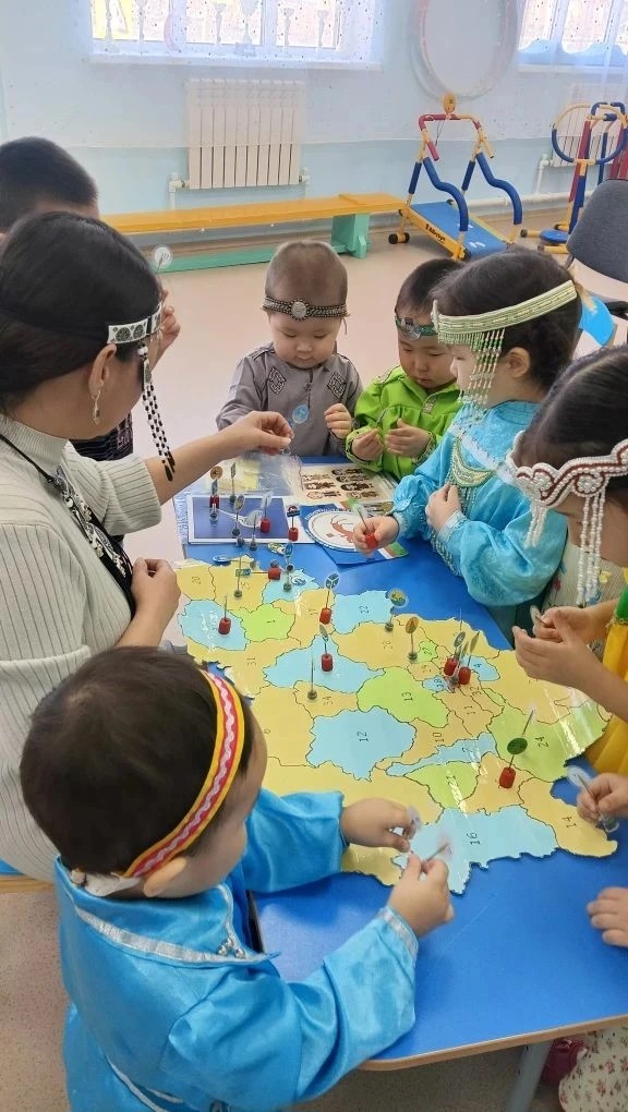 Для воспитанников детского сада «Кэскилчээнэ» проведен патриотический час «Мин сахабын». Для детей проведена беседа-диалог о нашей республике. По карте изучали районы, города, собирали пазлы. Мероприятие закрыли танцем Осуохай.